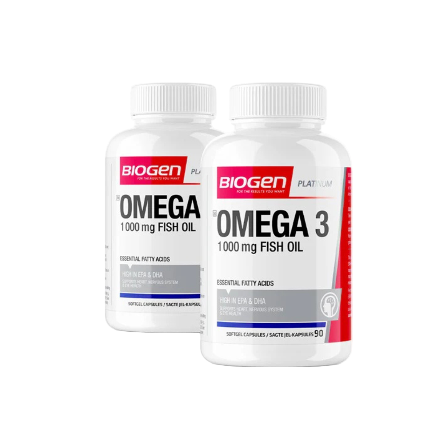 Biogen Omega 3 1000mg Fish Oil is a combination of fish oil and Vitamin E. Providing a source of omega-3 fatty acids, eicosapentaenoic acid (EPA) and docosahexaenoic acid (DHA), for the maintenance of good health. Helps maintain and support cardiovascular health. Helps to support cognitive health and brain function. Helps support the development of the brain, eyes and nerves in children. The added Vitamin E contributes to the protection of cells from oxidative stress.